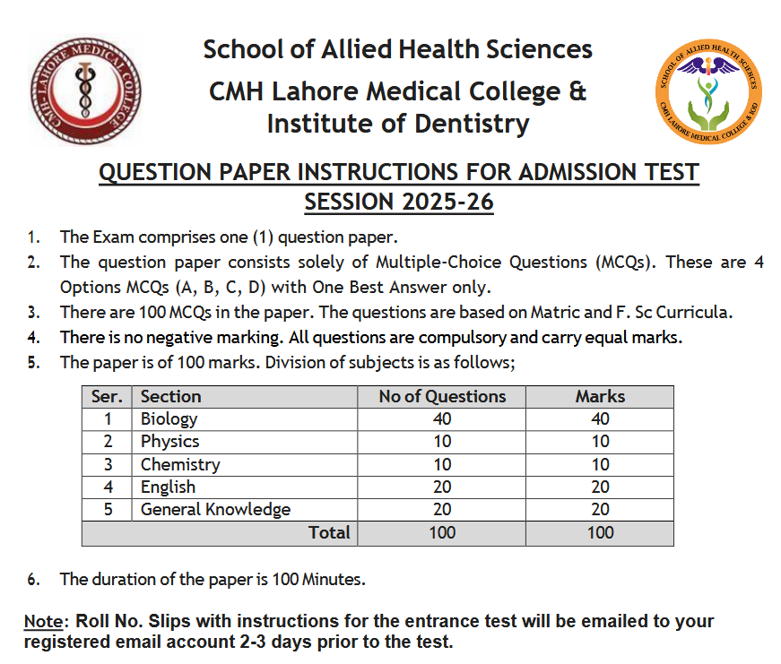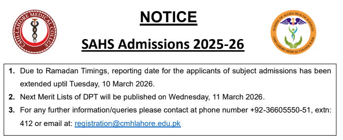 | For More Queries School of Allied Health Sciences(sa.sahs@cmhlahore.edu.pk) | Click Here! |