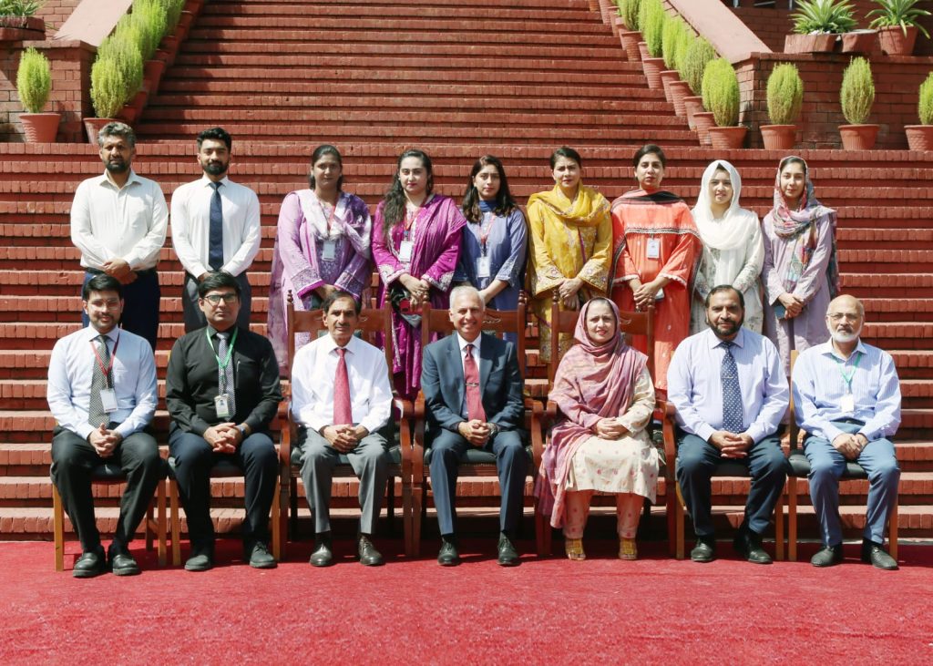 Sitting (L to R): Dr. Ali Asad Naeem, Dr. Umer Ilyas, Brig. Abdus Sattar (R) (Director SAHS), Maj Gen Salman Saleem (CE & Principal CMH LMC & IOD), Dr. Wajida Perveen (Associate Prof & HOD DPT), Col. Nadeem Yar Khan (Chief Clinical Coordinator & FDP), Dr. Sajid Zaheer Bhatti